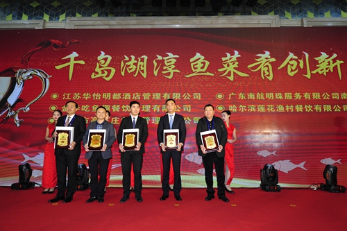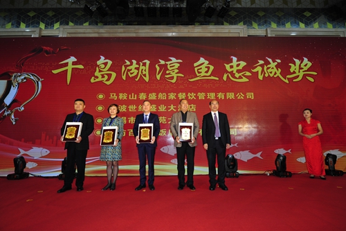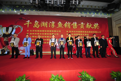 為答謝廣大淳魚(yú)客商對(duì)淳魚(yú)發(fā)展作出的突出貢獻(xiàn),公司評(píng)出了“千島湖淳魚(yú)菜肴創(chuàng)新獎(jiǎng)、禮儀創(chuàng)新獎(jiǎng)、銷售貢獻(xiàn)獎(jiǎng)、品牌傳播獎(jiǎng)、銷售新星獎(jiǎng)、忠誠(chéng)獎(jiǎng)”等六大獎(jiǎng)項(xiàng),并在大會(huì)上進(jìn)行了表彰。溫州得爾樂(lè)大酒店總經(jīng)理陳本保、千百味集團(tuán)董事局主席劉學(xué)紅先后代表獲獎(jiǎng)客戶作了發(fā)言。