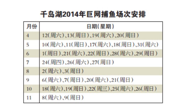 2014年千島湖巨網(wǎng)捕魚場次安排