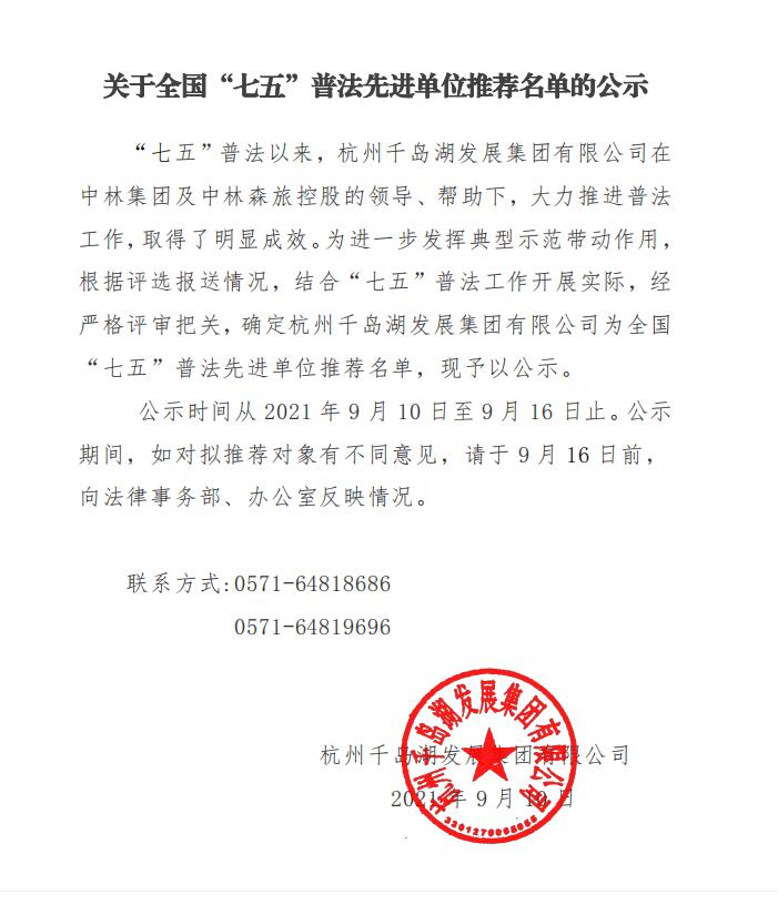 關(guān)于全國“七五”普法先進單位推薦名單的公示