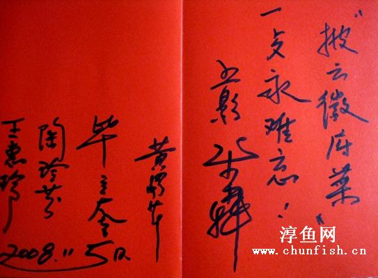 11月5日,著名影視明星牛犇一行在歙縣旅游局局長(zhǎng)吳東方的陪同下光臨披云山莊,在品嘗了披云徽府菜后贊賞不已,揮筆題字:披云徽府菜,一餐永難忘!(方曉明)