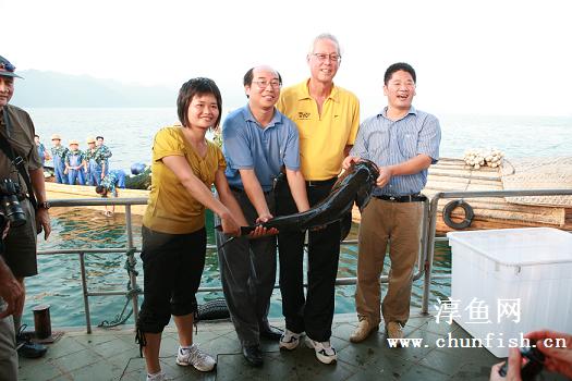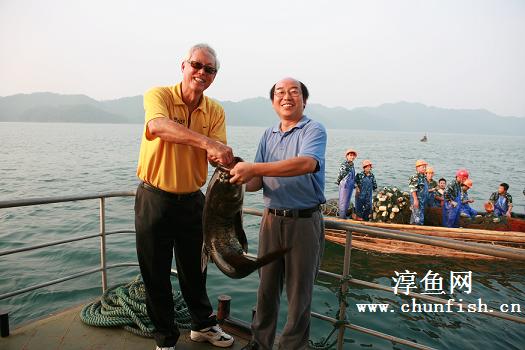 21日,秋高氣爽,丹桂飄香,下午中華一絕——千島湖巨網捕魚現(xiàn)場再一次迎來一位國家級元首——新加坡前總理、現(xiàn)國務資政吳作棟。群魚狂舞的壯觀場面讓吳作棟先生贊嘆不已,發(fā)出爽朗的笑聲,隨行人員也驚喜不已,紛紛舉起相機快門按個不停。當捕魚接近尾聲時,現(xiàn)場響起了陣陣掌聲,吳作棟先生也鼓掌對漁工的豐收表示祝賀,還揮手致意。捕撈工人為表示對吳作棟先生的歡迎和敬意,挑出一條網中的大魚和吳作棟先生合影留念。吳作棟先生欣然拎起大魚與公司領導合影,還希望能帶走這條魚。當他了解到巨網捕魚這一項目非常的受新加坡市民歡迎,并且公司有將把淳牌有機魚銷往新加坡意向時,連連說好?。ò察o 文/汪敏 攝)