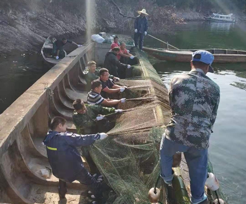 在慶祝中華人民共和國成立70周年之際,養(yǎng)殖場黨員認真做好群眾網(wǎng)箱老口魚種投放工作、金峰網(wǎng)攔庫灣收網(wǎng)工作,以實際行動慶祝新中國生日。(施水滟)