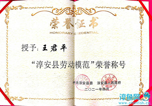 千島湖魚味館總經(jīng)理王君平被授予2021年“淳安縣勞動(dòng)模范”榮譽(yù)稱號(hào)并受表彰。