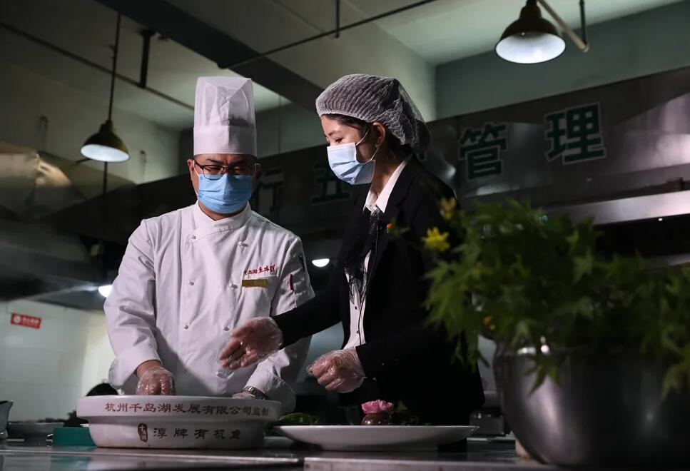 晏文娟帶領(lǐng)千島湖魚(yú)味館團(tuán)隊(duì),推出了以“健康、綠色、文娟式服務(wù)”為標(biāo)準(zhǔn)的“綠水青山宴”,提倡分餐制、使用公筷公勺公夾,使游客感受不一樣的“餐桌革命”帶來(lái)的文明體驗(yàn)。魚(yú)味館將綠色食材作為最大優(yōu)勢(shì),讓創(chuàng)新和工匠精神融入菜肴和服務(wù)中,讓顧客在開(kāi)心、放心中領(lǐng)略到綠色餐飲的內(nèi)涵。