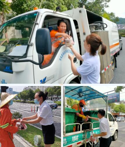 立秋已過,高溫仍在持續(xù),堅(jiān)守在千島湖鎮(zhèn)各個(gè)街道上的環(huán)衛(wèi)工人們依舊頂著烈日高溫,盡心工作保持各街道干凈整潔。為表達(dá)對(duì)環(huán)衛(wèi)工人們的深切關(guān)愛,8月9日,千發(fā)集團(tuán)下屬單位千島湖魚味館開展夏日送清涼活動(dòng),在魚味館黨支部書記王君平的帶領(lǐng)下,各黨員及員工代表帶著早早就準(zhǔn)備好的冰鎮(zhèn)木耳湯和淳魚有機(jī)魚塊,為“城市清道夫”送上一份清涼,送上一份來自淳魚的愛心關(guān)懷。