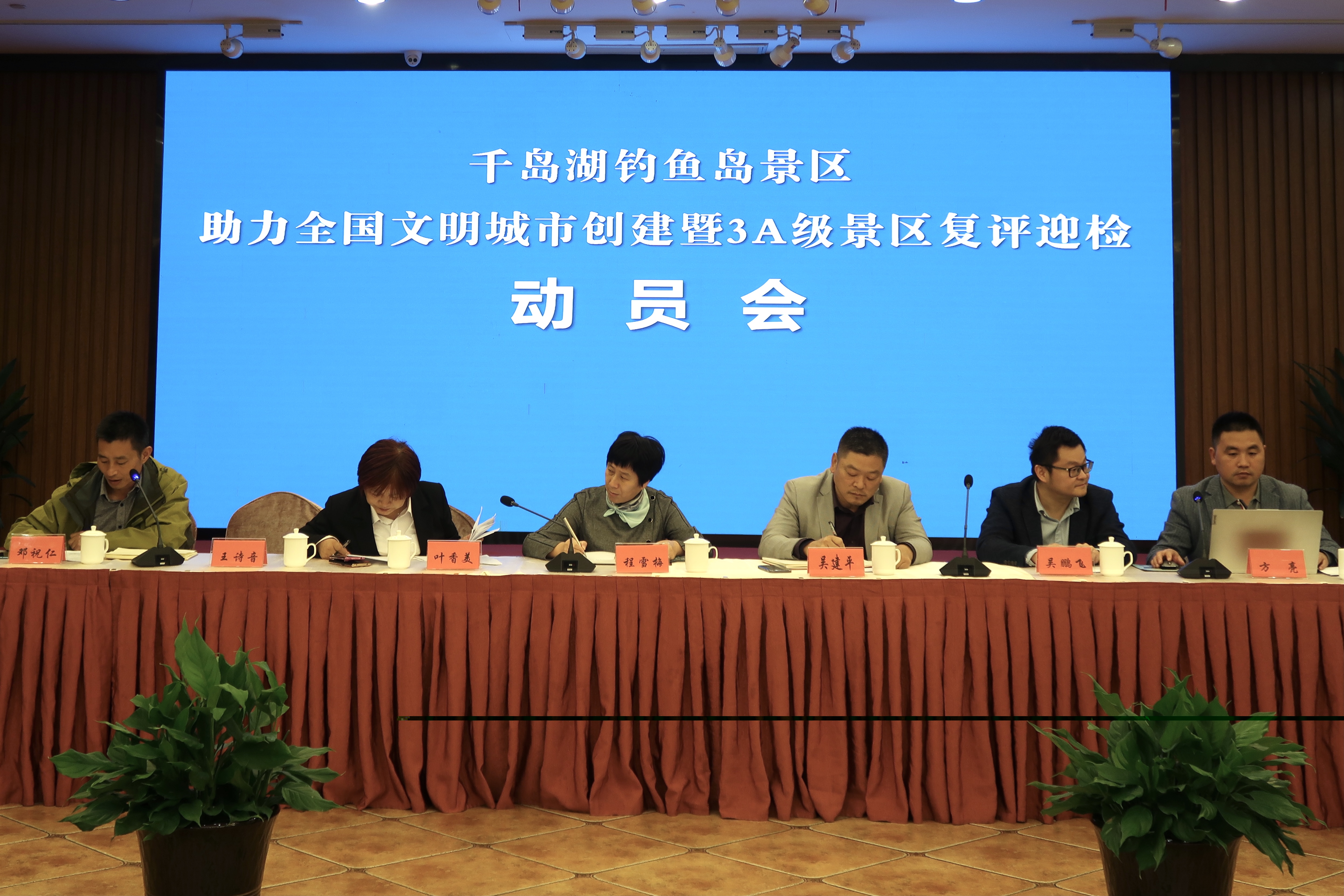 為全面做好千島湖釣魚島3A級旅游景區(qū)復(fù)評迎檢工作,確保順利通過3A級旅游景區(qū)復(fù)評,全面提升景區(qū)服務(wù)、管理質(zhì)量。10月19日,千發(fā)集團(tuán)下屬子公司杭州千島湖魚文化旅游有限公司召開了“助力全國文明城市創(chuàng)建暨3A級景區(qū)復(fù)評迎檢”動員大會。千發(fā)集團(tuán)高度重視此次復(fù)評工作,動員全員做好自查整改,以最飽滿的精神狀態(tài)迎接本輪復(fù)評工作。