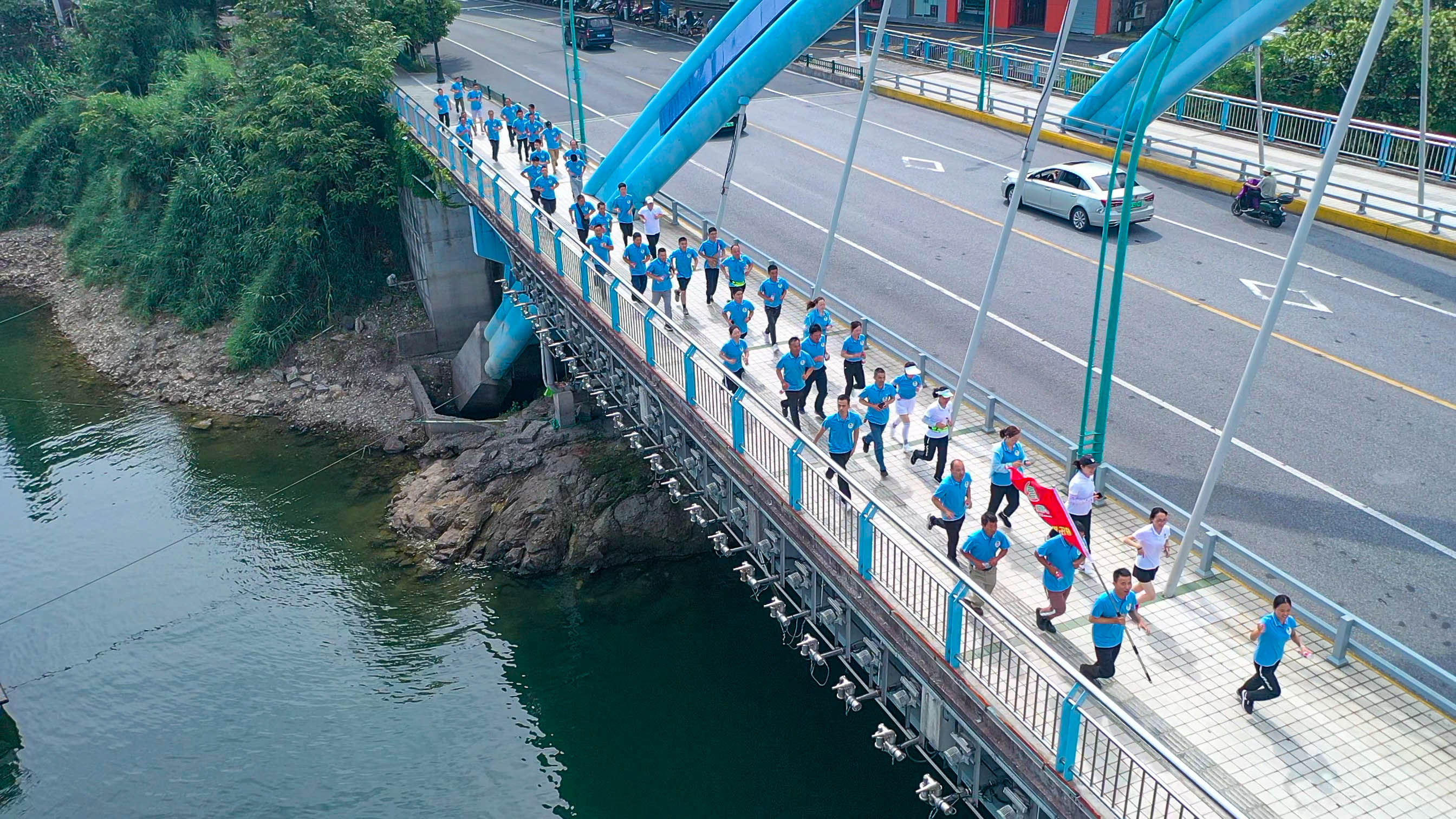 活動前,大家進行了集體的熱身活動,跑團負責同志講解了活動規(guī)則與注意事項。隨著一聲“跑步開始!”,運動員們邁開矯健的步伐沖刺向前,在綠水青山的夏景中不停穿梭揮灑汗水。
