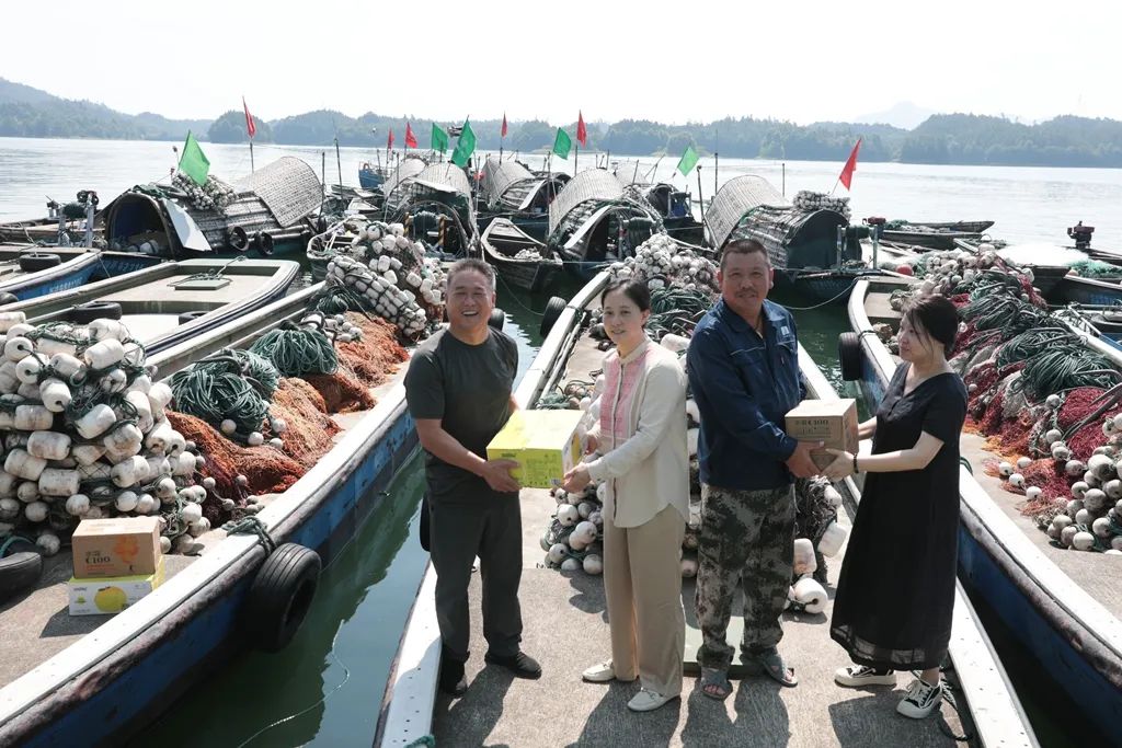 在淳魚銷售中心碼頭,有這樣一群“抱魚人”,他們穿著防水衣,在靜養(yǎng)池中作業(yè),為全國客戶挑選不同規(guī)格的魚貨,湖水、汗水早已浸透全身,澆筑出鋼鐵般的意志。而充足的后勤保障也能及時為他們送上清涼解暑、補充體力的飲品。