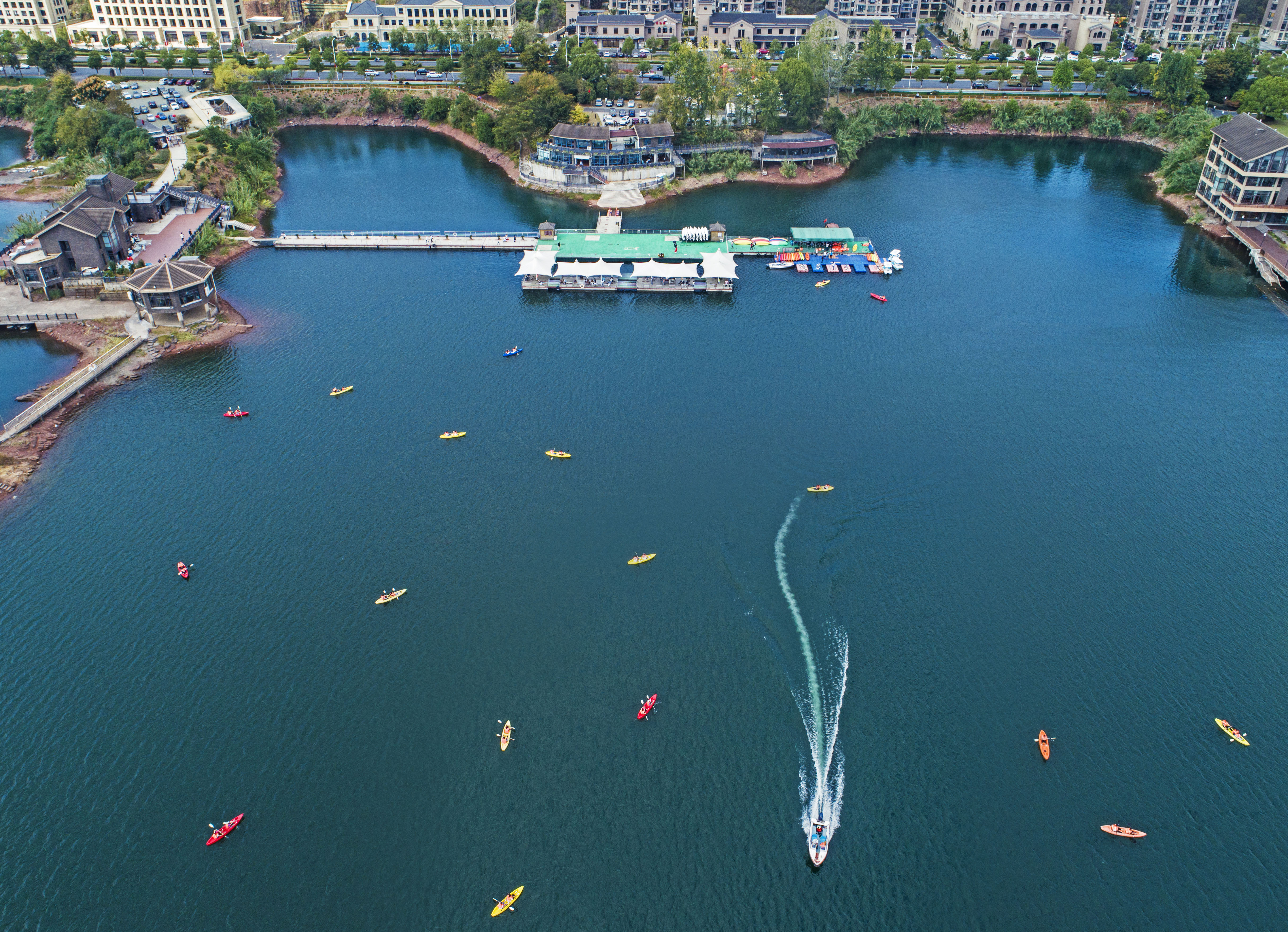 秋風(fēng)颯颯,在皮劃艇上一邊沉浸湖光山色一邊享受水上運動的快樂。