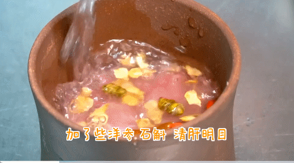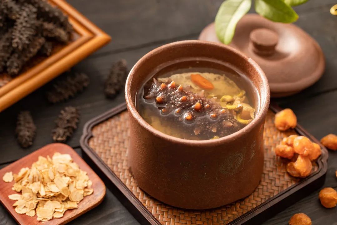 “一日一參,健康是金",伴隨著海參的加入,這一盅肉湯增添了深海的風(fēng)味,更是滋補營養(yǎng)。除此之外,還加入了洋參、石斛,具有清肝明目之功效。
