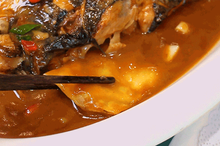 咕嘟嘟的魚頭散發(fā)著鮮香