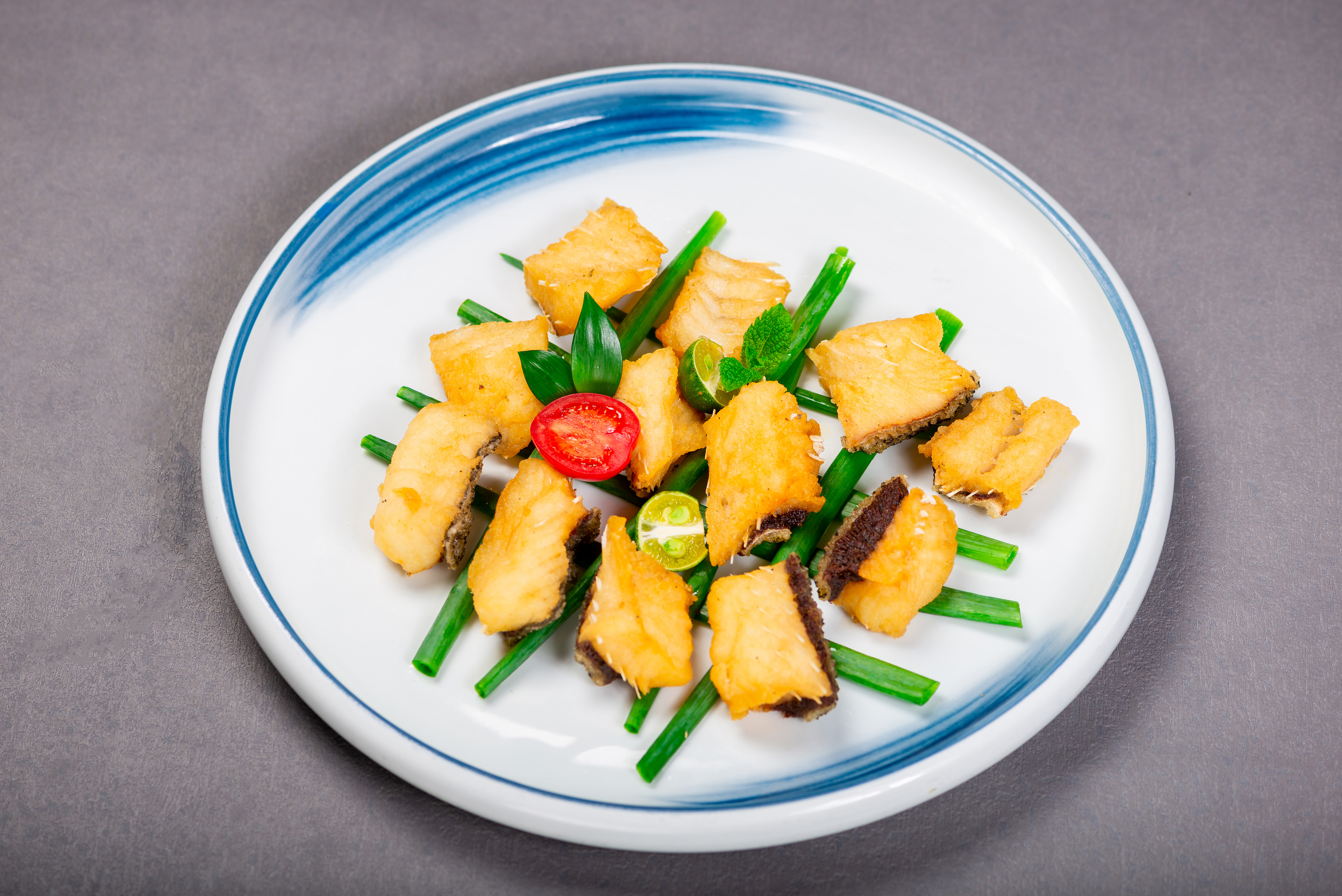 炸制時,精細(xì)的處理干凈之后的黃鱔不開膛沾少許面粉直接下鍋,高溫下讓黃鱔自然盤在一起。