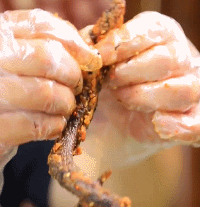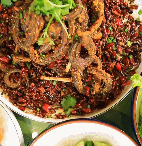 吃法也很有講究,捏著頭,擰著腰,從脖子處順著一根獨骨向下撕將盤龍鱔分成兩半,去除其中的腸子就可以開吃了。