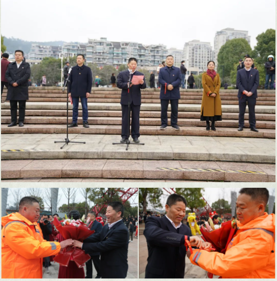 杭州千島湖發(fā)展集團(tuán)有限公司黨委書記、總經(jīng)理何光喜回顧過(guò)去展望未來(lái),帶領(lǐng)集團(tuán)班子一行向捕撈隊(duì)代表送上鮮花,為他們系上「順風(fēng)順?biāo)~滿倉(cāng)」的祈福絲帶,寓意著新的一年平平安安大豐收!
