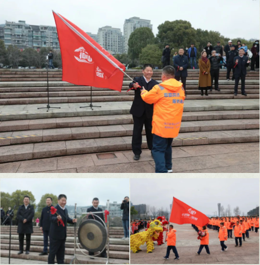 隨著響亮的開鑼聲,葉志清隊(duì)長(zhǎng)高舉著旗幟,帶領(lǐng)著隊(duì)員雄赳赳氣昂昂向船隊(duì)進(jìn)發(fā)。