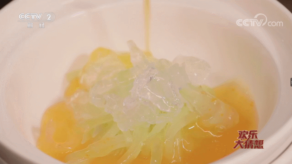 晶瑩剔透的食材澆淋上高湯