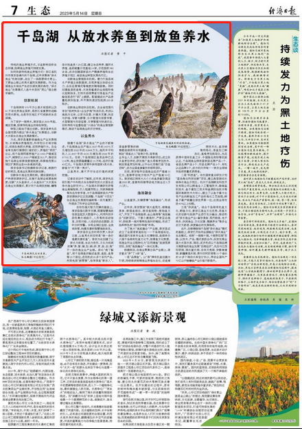 5月14日,《經(jīng)濟(jì)日?qǐng)?bào)》刊發(fā)報(bào)道《千島湖 從放水養(yǎng)魚到放魚養(yǎng)水》。