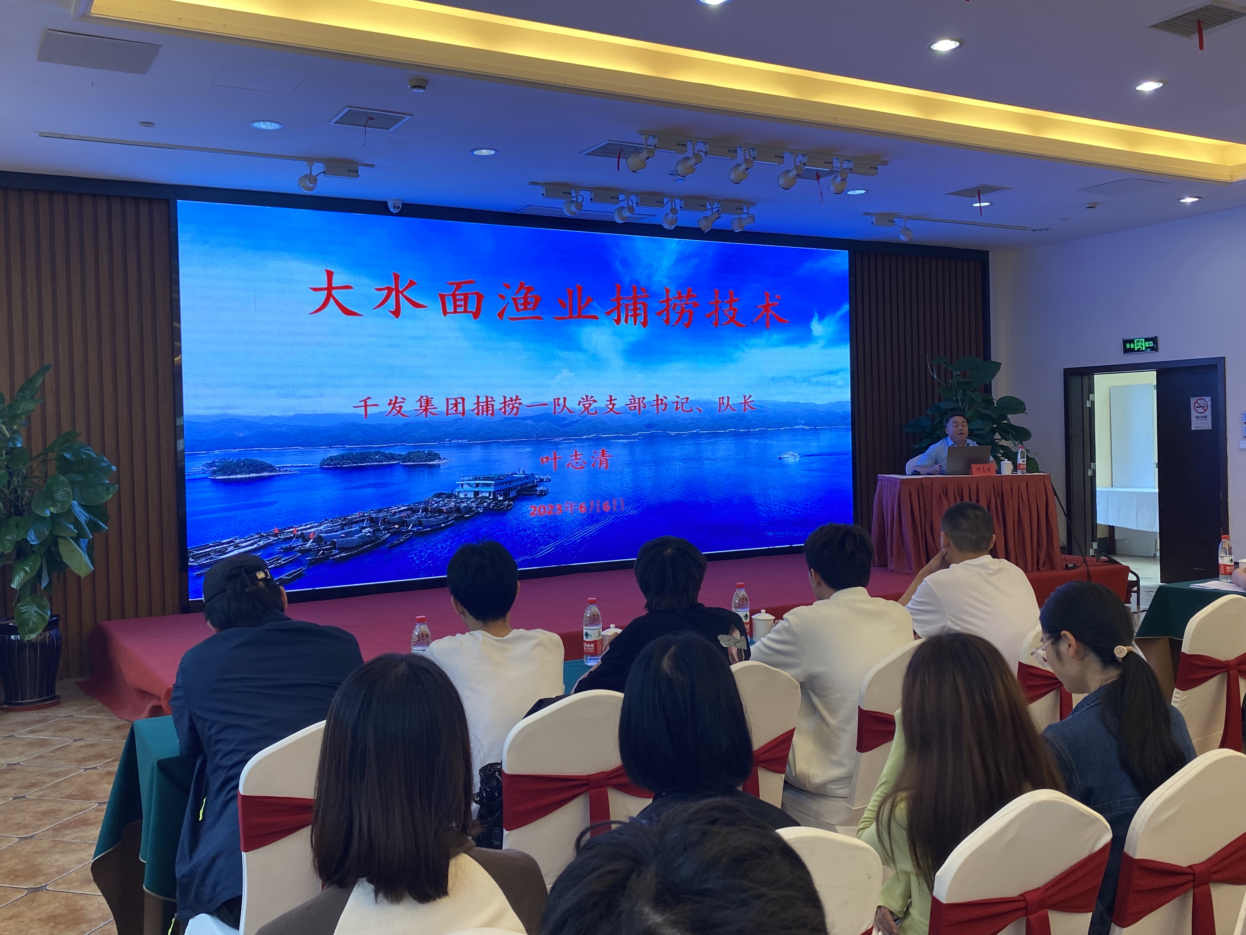 集團(tuán)公司黨委書(shū)記、總經(jīng)理、研究員何光喜和同學(xué)們分享了《“兩山理論”典型案例---千島湖保水漁業(yè)模式》,介紹了公司基本情況及千島湖漁業(yè)全產(chǎn)業(yè)鏈發(fā)展?fàn)顩r,讓同學(xué)們對(duì)公司漁業(yè)產(chǎn)業(yè)各環(huán)節(jié)和千島湖大水面保水漁業(yè)的產(chǎn)業(yè)化有了很好的認(rèn)識(shí)。