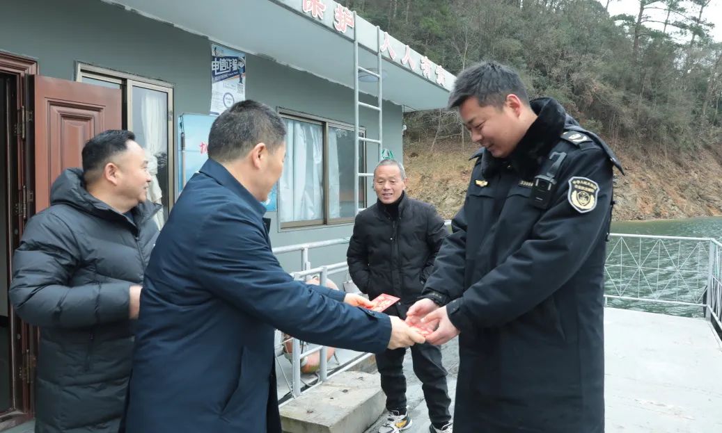 2月7日,千發(fā)集團和淳安縣漁業(yè)行政執(zhí)法大隊聯(lián)合帶隊前往千島湖漁政管理、淳魚產(chǎn)銷一線開展春節(jié)慰問活動,為仍在崗位堅守的一線人員送去新春祝福。