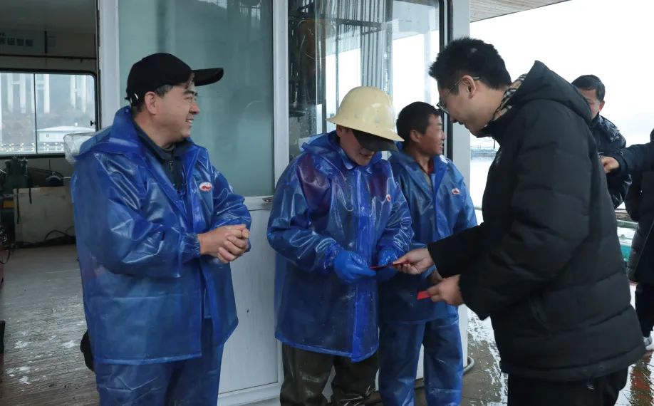 千發(fā)集團黨委書記、總經(jīng)理何光喜,農(nóng)業(yè)農(nóng)村局黨委委員、農(nóng)業(yè)綜合行政執(zhí)法隊專職副隊長何杰云,淳安縣農(nóng)業(yè)農(nóng)村局三級調(diào)研員彭革東帶隊來到了千島湖西南、西北、東南、東北以及千島湖分站等5個漁政分站18個管理組,捕撈一隊船隊及淳魚靜養(yǎng)基地、起魚碼頭、攔網(wǎng)管理組等值班崗位,對所有春節(jié)期間依然辛勤工作的一線職工致以節(jié)日的問候和誠摯的祝福,叮囑大家在喜迎新春的同時,要高度重視值班工作,嚴(yán)格落實崗位工作要求和值班紀(jì)律,持續(xù)做好千島湖全湖區(qū)漁業(yè)資源管控和漁業(yè)生產(chǎn)工作,常鳴安全警鐘,筑牢安全防線,保證春節(jié)期間平安穩(wěn)定,確保大家度過一個歡樂、祥和的春節(jié)。
