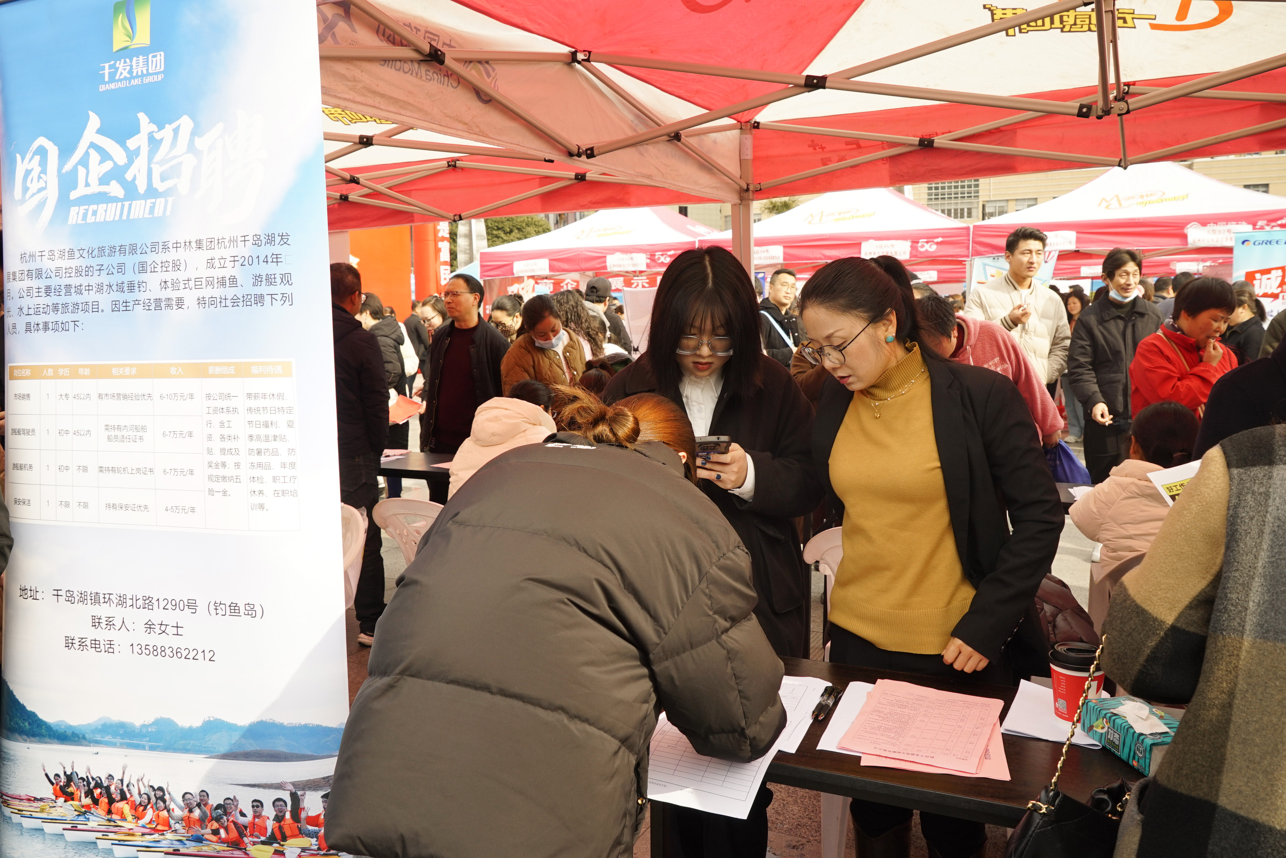 求職現(xiàn)場人頭攢動,千發(fā)集團(tuán)作為國有企業(yè),以其在當(dāng)?shù)亓己玫钠髽I(yè)形象和品牌影響力,吸引了不少求職者。工作人員忙著向求職者介紹著企業(yè)概況,崗位職責(zé)和薪資待遇。