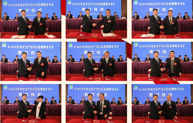 會上各單位簽訂2024年度安全生產與綜合治理責任書。