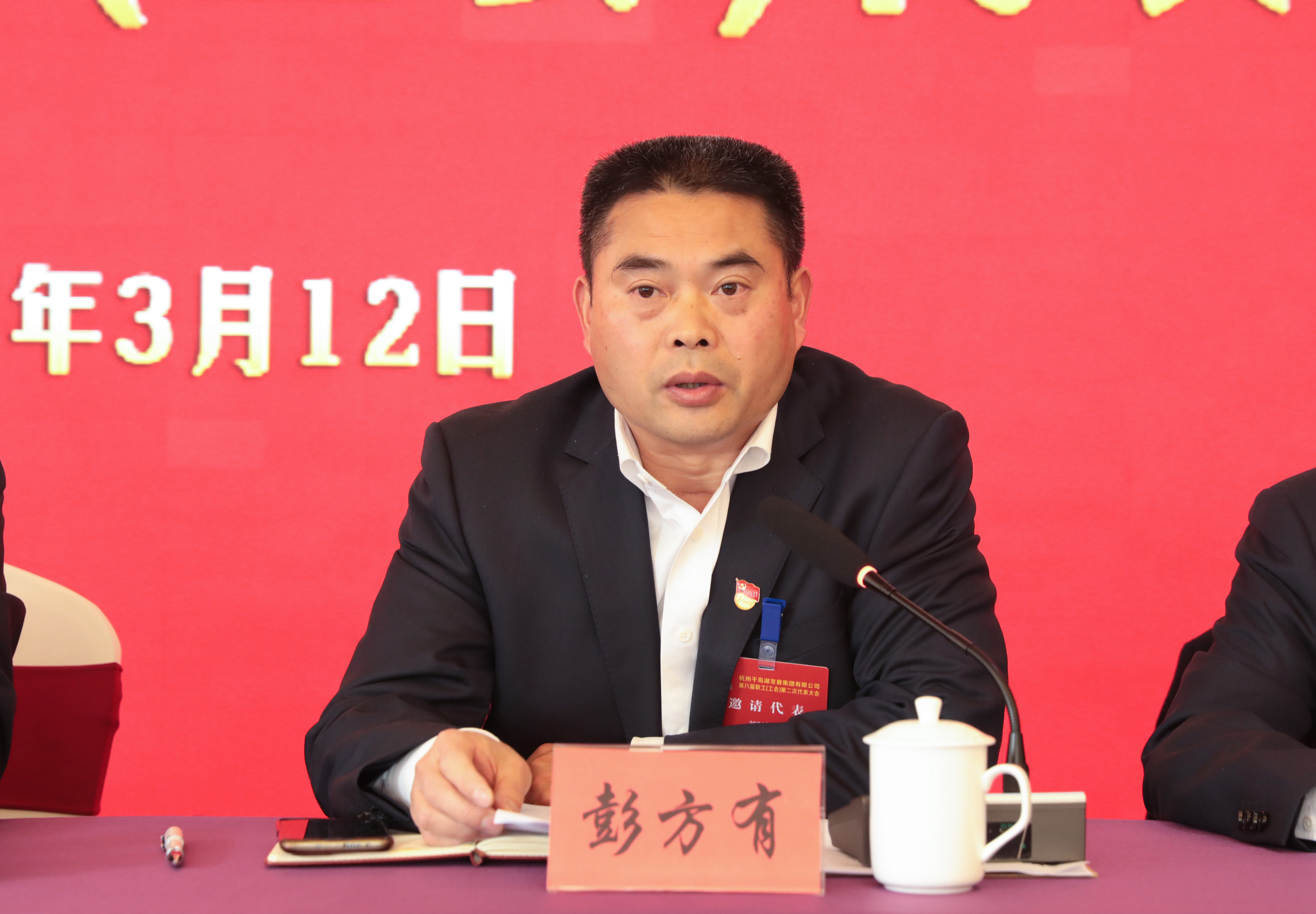 淳安縣新安江生態(tài)開發(fā)集團黨委委員、副總經理、工會主席彭方有到會祝賀并致辭。