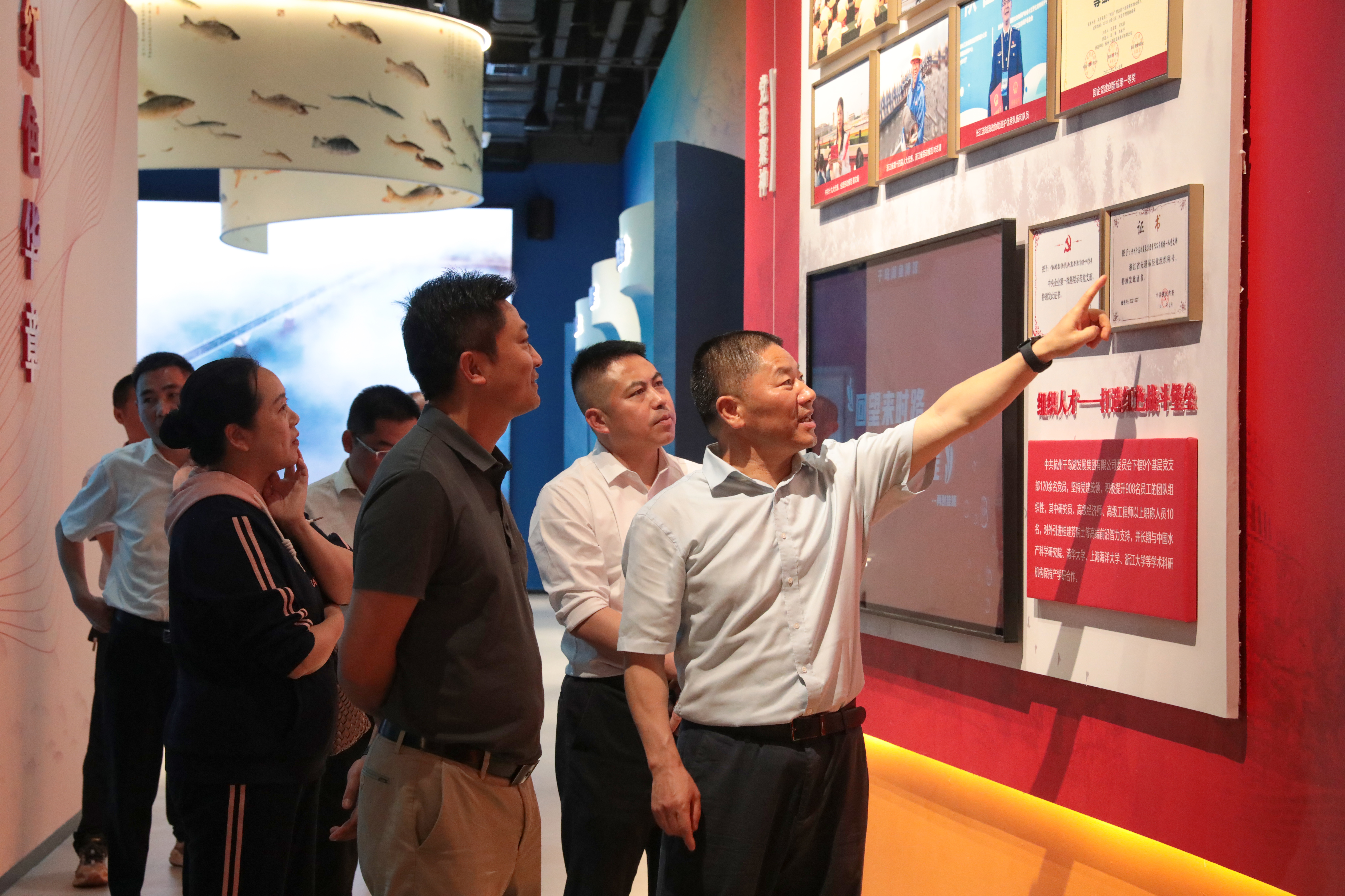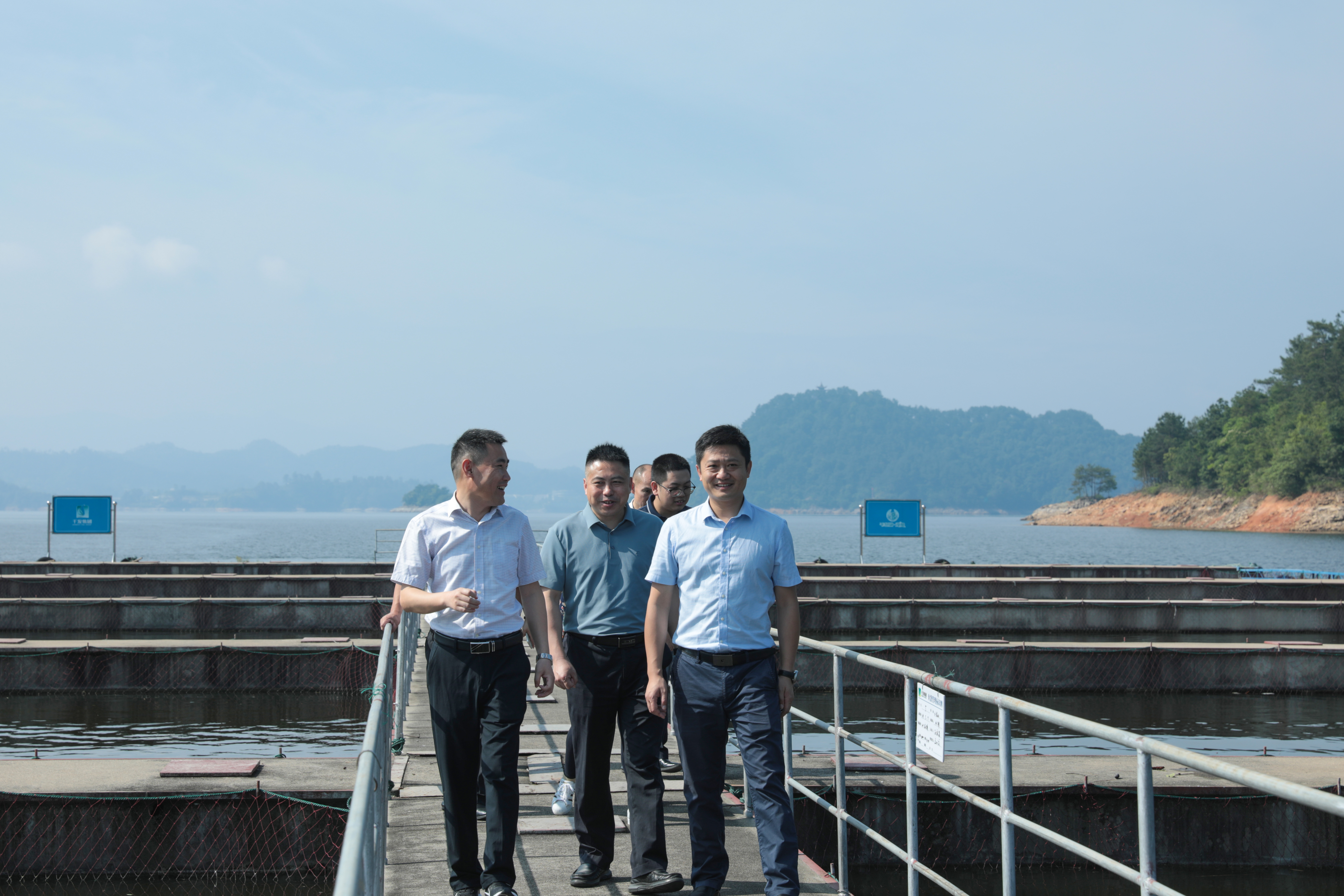 在魚(yú)博館,危俊一行聽(tīng)取了講解員關(guān)于千島湖漁業(yè)文化歷史、千島湖保水漁業(yè)的探索和發(fā)展,以及千發(fā)集團(tuán)動(dòng)車(chē)組式漁業(yè)全產(chǎn)業(yè)鏈打造歷程等情況的介紹。他對(duì)千發(fā)集團(tuán)踐行綠水青山就是金山銀山理念,持續(xù)提升千島湖保水漁業(yè),實(shí)現(xiàn)良好的生態(tài)效益、社會(huì)效益和經(jīng)濟(jì)效益表示贊賞。他表示,千發(fā)集團(tuán)與崇義縣陽(yáng)明湖開(kāi)展合作以來(lái),有力幫助了陽(yáng)明湖發(fā)展生態(tài)保水漁業(yè),千島湖“兩山”高水平轉(zhuǎn)化、高質(zhì)量發(fā)展的實(shí)踐正在崇義縣火熱推進(jìn),希望千島湖和陽(yáng)明湖增進(jìn)交往、加強(qiáng)合作,在中國(guó)式現(xiàn)代化新征程的道路上攜手共進(jìn)。