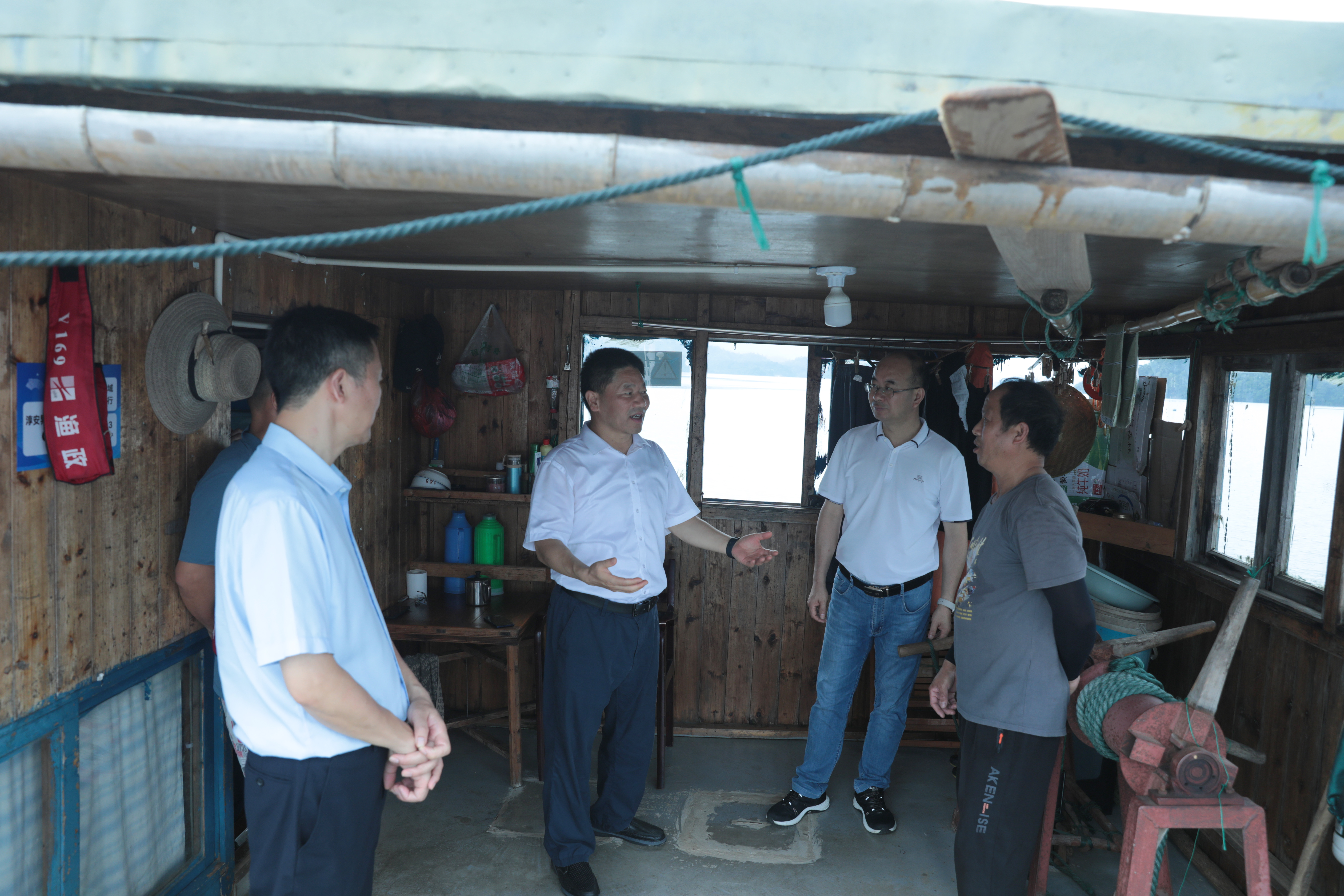 6月23日中午,何光喜總經(jīng)理聞訊新安江大壩即將開閘泄洪,立即指令捕撈一隊以最快速度派出一艘機(jī)動船,拖帶攔網(wǎng)船、航道船等船只網(wǎng)具和隊員們趕往大壩附近水域,設(shè)置泄洪防逃網(wǎng)以最大限度減少漁業(yè)資源因泄洪而損失。與此同時,何光喜、葉志清等人乘坐快艇先行前往大壩水域,勘查放網(wǎng)選址,科學(xué)制定泄洪攔網(wǎng)的設(shè)置方案。