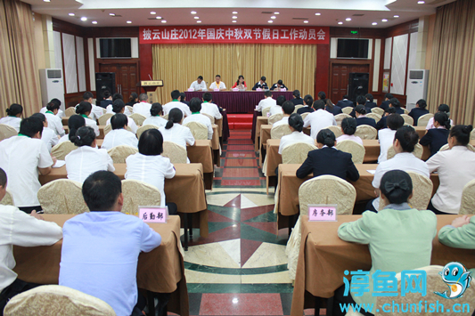 9月19日,歙縣披云山莊召開備戰(zhàn)2012年“中秋、國慶”雙節(jié)工作動員會,全體員工參加會議,副總經(jīng)理晏文娟在會上對旅游黃金周的各項準(zhǔn)備工作提出了要求。